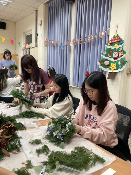 本次辦理「聖誕花圈手作工作坊」,邀請校內外籍學生、本地學生及教職員一同參與。活動以聖誕節節日文化為切入點,透過花圈手作體驗,引導參與者認識聖誕節的文化背景與節日意涵,並在輕鬆的交流過程中分享彼此的生活經驗與文化觀點。透過節日主題的互動交流,不僅促進不同文化之間的理解,也讓本地師生更進一步了解外籍同學在臺生活的樣貌,進而營造友善、多元且具國際氛圍的校園環境。