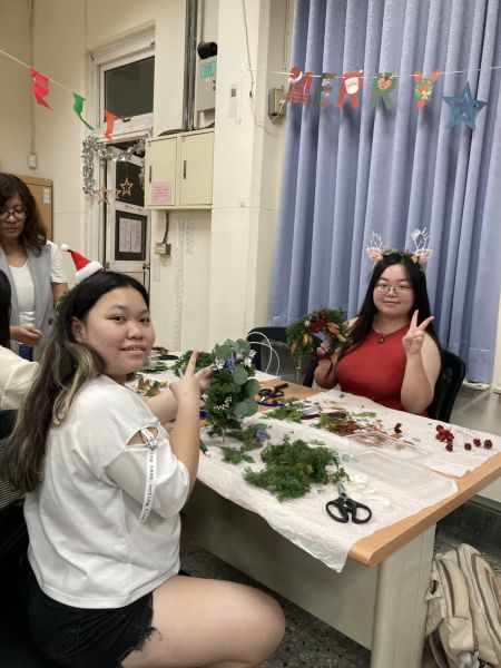 本活動以聖誕節節日文化為出發點,透過花圈手作體驗,營造輕鬆、具互動性的交流情境,引導不同文化背景的參與者分享各自對節慶的理解與生活經驗。藉由節日文化的共同參與,促進校內外籍學生、本地學生與教職員之間的交流與理解,讓本地成員更貼近外籍同學在臺生活與文化差異,進而打造友善、多元且具國際視野的校園環境。