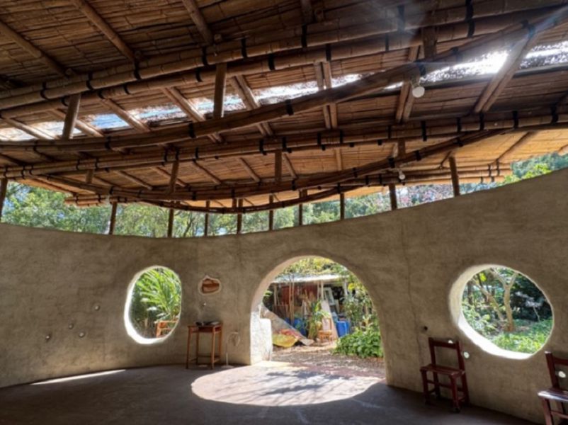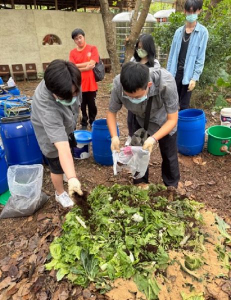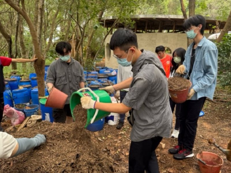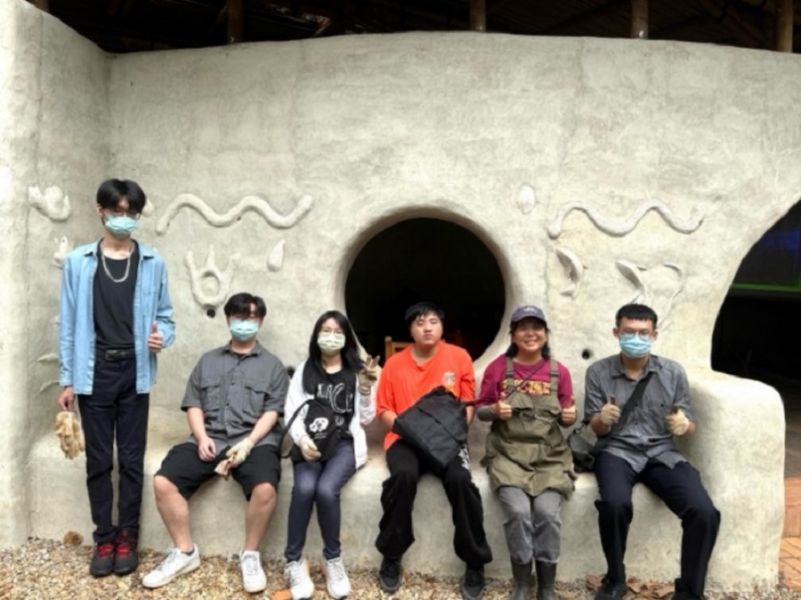 以大肚山紅土為素材的自然建築-台中水滴屋,是由多數為女性志工們合作興建的性別友善、年齡友善建築,於2022年2月6日開工,將近三年施工期間,共有超過3000 人次的志工參與協力造屋,其中近七成參與者是女性,百分之五參與者為小孩。我們鮮少關注女性在建築工作上的發揮,不論是搭建、概念構想,普遍以為女性較不擅長此領域。但不論性別為何,這棟水滴屋充滿女力的價值!而工作、職業也無須分性別,只要可以發揮其所長、看見自我價值才是最重要的!「性別與生活」課程學生透過本次校外教學參訪基地,進行非常紮實地的課程活動,學生打開五感,看見以樸門永續打造的水滴屋、菜園、水滴屋、雞舍、羊舍、生態廁所,並且動手參與厚土堆肥的實作,將自家的廚餘與社區的落葉碎木屑等堆肥成為滋養土地的養分來源,多數學生是第一次作堆肥,並表示平常很少到戶外綠地,覺得此地很原始、很自然,透由堆肥體驗照顧地球母親,緩解極端氣候造成天災所導致對許地地區弱勢性別族群的災難,為環境生態盡一份心力。