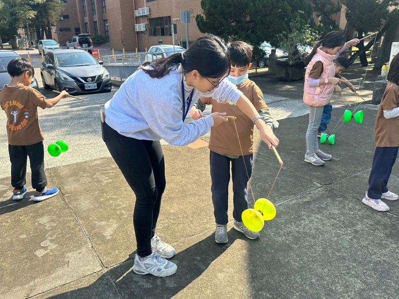 扯鈴課:訓練學童基本的球感並教導如正確握拍,課程中進行揮拍訓練讓學童習慣球拍重量以及揮拍的軌跡,最後讓學童進行擊球以訓練準度。