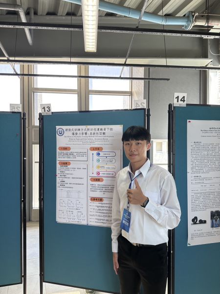 本次研討會中學生以口頭發表為主,共計三篇,皆榮獲優秀口頭論文獎的肯定,研究主題涵蓋視覺知覺、注意力負荷及訓練輔具對運動表現與動作控制之影響。三篇研究均結合運動生物力學量測與智慧科技分析方法,展現理論與實務應用之整合成果。