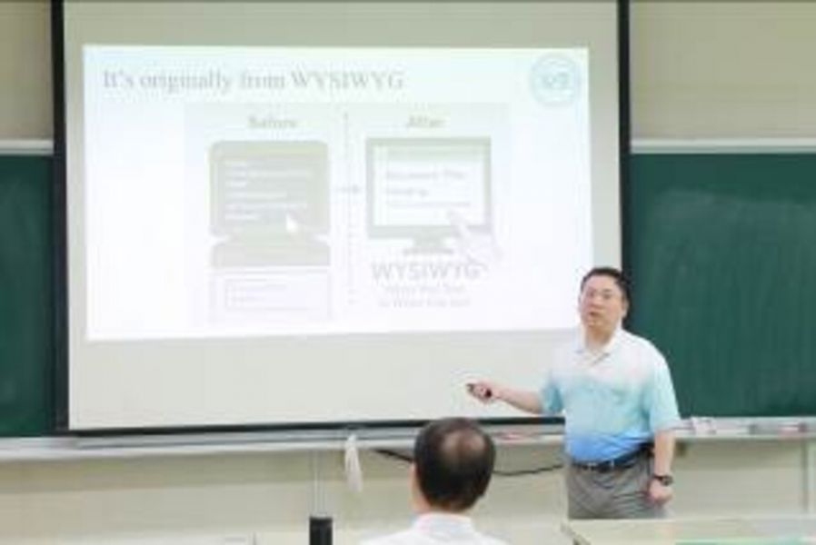 活動由黃國展主任擔任開場主持徐國勛副教授擔任主講人,內容涵蓋範圍廣泛且深入淺出。課程一開始從生成式AI技術出發,介紹AI生成圖片的應用與辨識,並探討不同風格的圖像表現如何揭示創作背後的演算法邏輯。同時也示範如何以指令調整生成內容,說明AI在教育及課堂示範上的輔助角色。