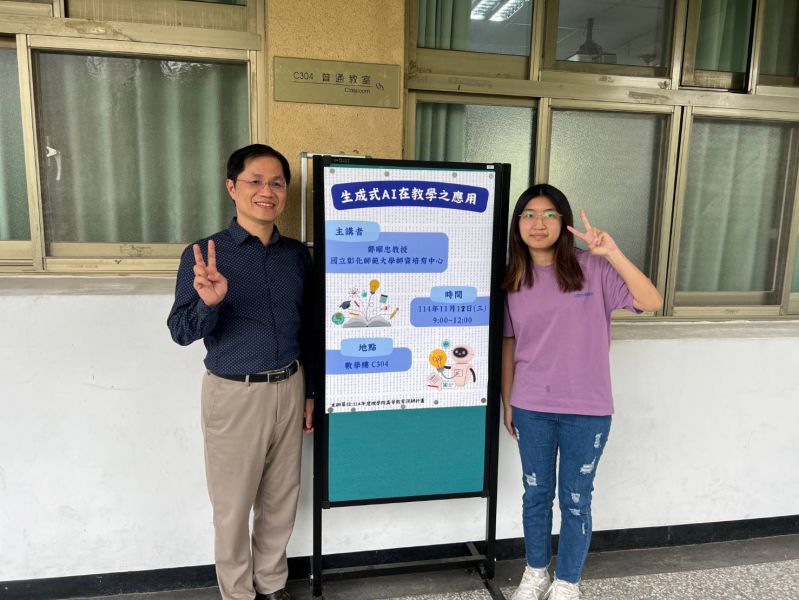 彰師大鄭曜忠教授為彰師大師培中心教授,輔導師培生應用科技技術與材料撰寫教學案例,教學經驗豐富,鑒於學生在學習數學上產生枝困擾,因此自行專研AI功能提升學生學習成效,成果具有成效並並提升了學生學習動機:課程中提綱挈領,提供軟體設計與資訊技術服務,他深入淺出的介紹科技如何融入數學學科引導學生學習,指導學生利用AI生成的效果及優勢,讓學生理解數學概念之重點與變化,理解科技學習對於數學教學之輔助,期待學生能利用科技做有效教學之推展,學生對於鄭教授之講演內容深刻,學習興趣盎然。